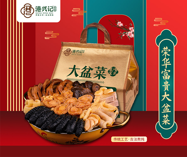 港興記大盆菜,傳承經(jīng)典與開拓創(chuàng)新,采用鮑魚、海參、魚翅、魚肚、花菇、鵝掌等上好食材,經(jīng)過(guò)多重食材烹飪工藝,再配以港興記濃香鮑汁經(jīng)久熬燉而成,每一道食材都是精心制作、古法熬燉。通過(guò)快速冷凍及鎖鮮包裝等技術(shù)、航空運(yùn)輸?shù)瓤爝f物流,港興記盆菜已經(jīng)成為節(jié)日送禮、家庭朋友團(tuán)圓相聚的飲食文化標(biāo)志,通過(guò)細(xì)細(xì)品味盆菜的每一道食材,給你帶來(lái)團(tuán)圓美好,其樂(lè)融融的節(jié)日氣氛。